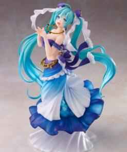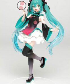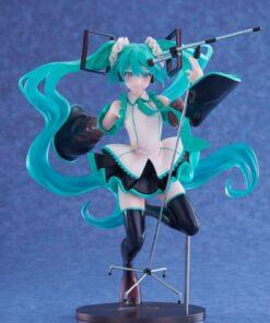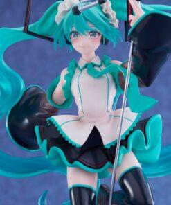 Her iconic turquoise hair is elegantly sculpted with dynamic movement, and her sweet and mischievous expression reflects the endearing personality of the famous Vocaloid. The matte finish of the clothes, the textured effects, and the discreet base highlight Taito's signature craftsmanship.