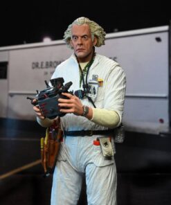 Con la somiglianza con licenza ufficiale dell’attore Christopher Lloyd, questa action figure in scala 7″ Ultimate Doc Brown si basa sull’aspetto della sua tuta ignifuga nel 1985. Include teste intercambiabili, braccia e mani intercambiabili, revolver, appunti e telecomando della macchina del tempo.
