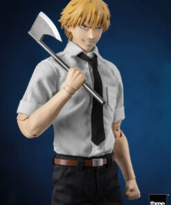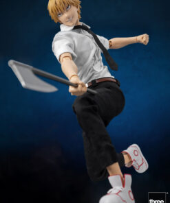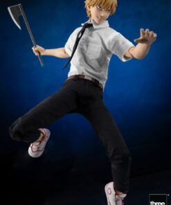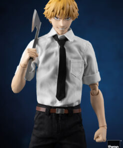 Denji include un totale di due volti intercambiabili (espressioni compiaciute e gongolanti) e una testa di motosega intercambiabile! La mascella inferiore della testa dell’Uomo Motosega è intercambiabile tra chiusa e aperta, con una lingua che sporge dalla mascella aperta con un giunto articolato alla base. La figura include anche un totale di sei set di mani intercambiabili e un paio di avambracci da motosega per completare la trasformazione in Chainsaw Man. Gli accessori aggiuntivi includono un’ascia e un Pochita non articolato in scala 1/6. L’abbigliamento del personaggio comprende una camicia bianca, pantaloni e una cravatta, tutti realizzati in tessuto.
