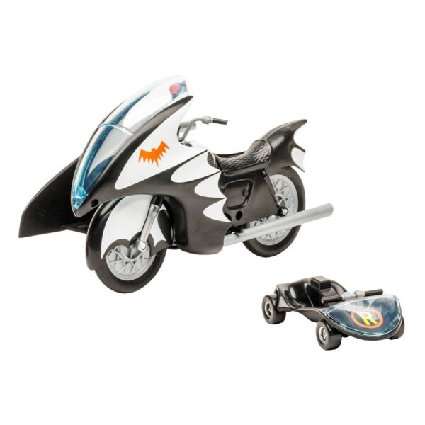 – Sia Batcycle che sidecar, entrambi con ruote girevoli Confezionati in una scatola aperta con l’iconico look old school della serie Batman degli anni ’60