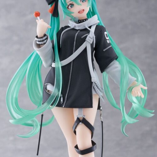 Dalla serie “Hatsune Miku” arriva questa statua in PVC. È alta 18 cm e viene fornita con base in una confezione stampata.