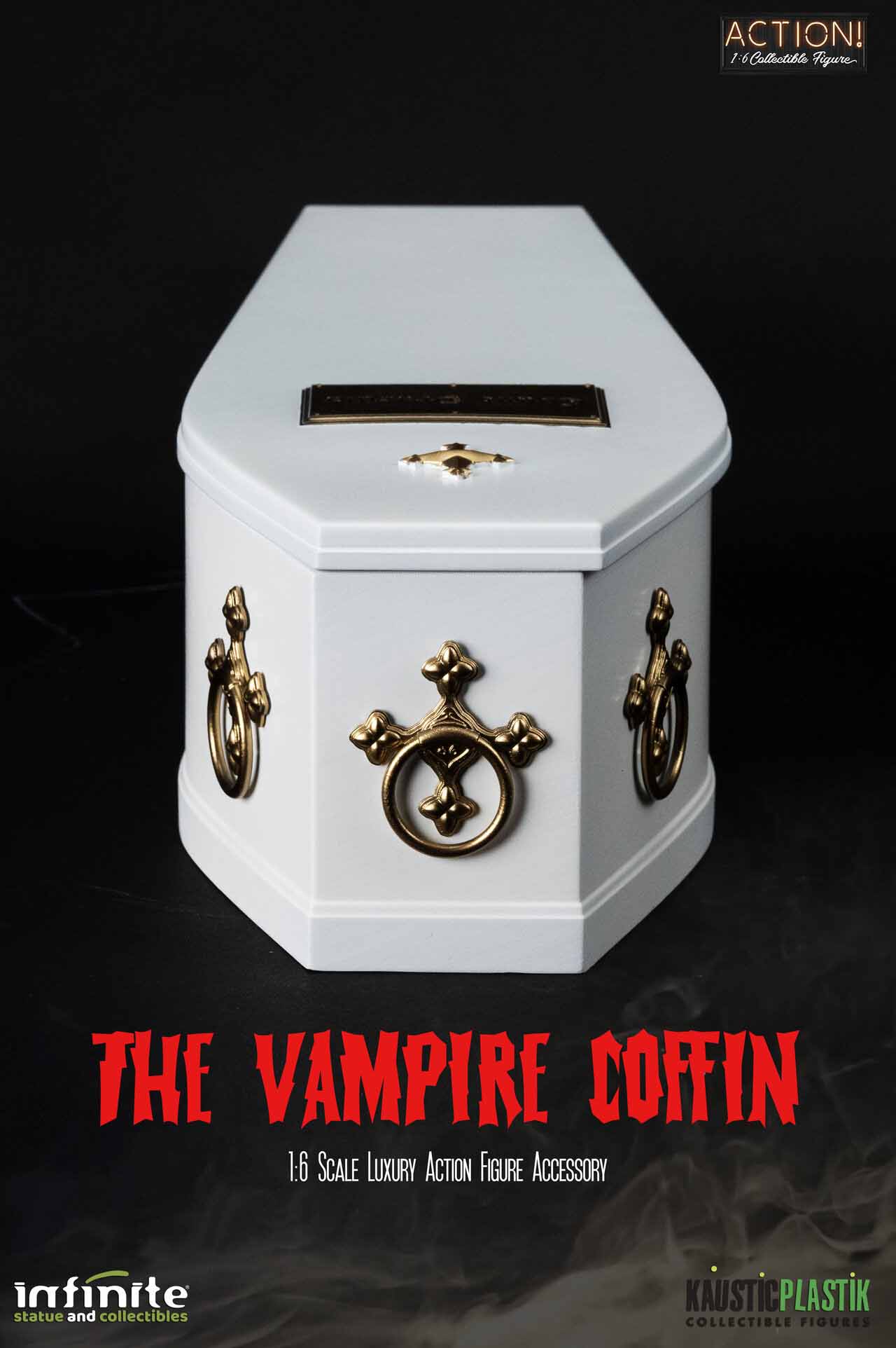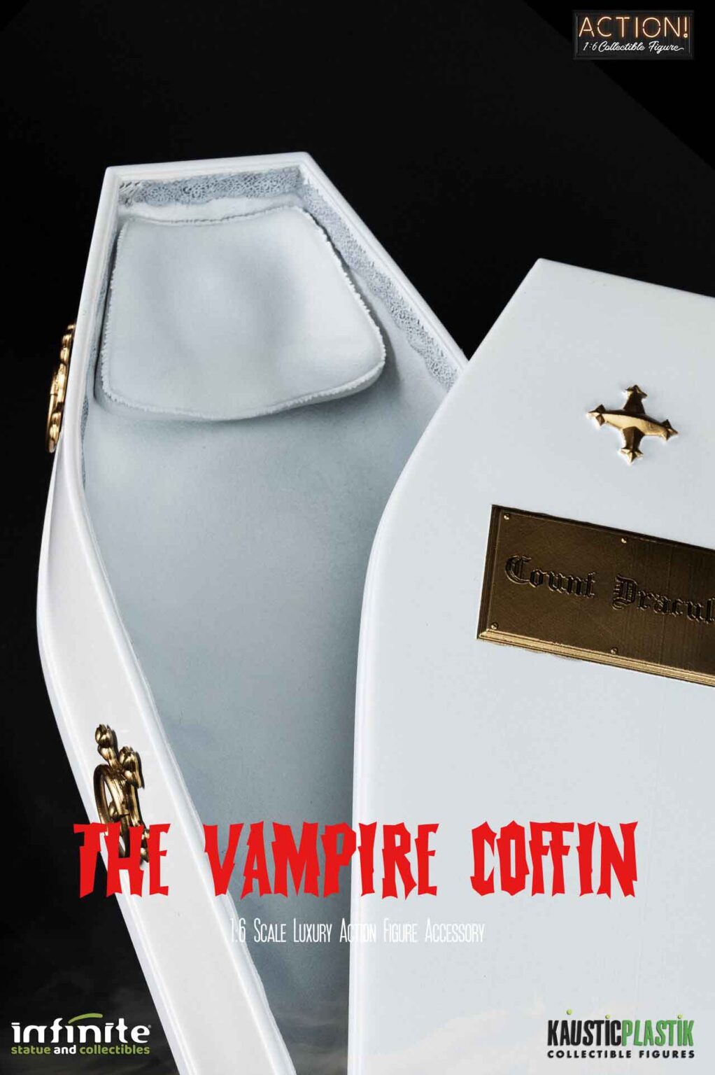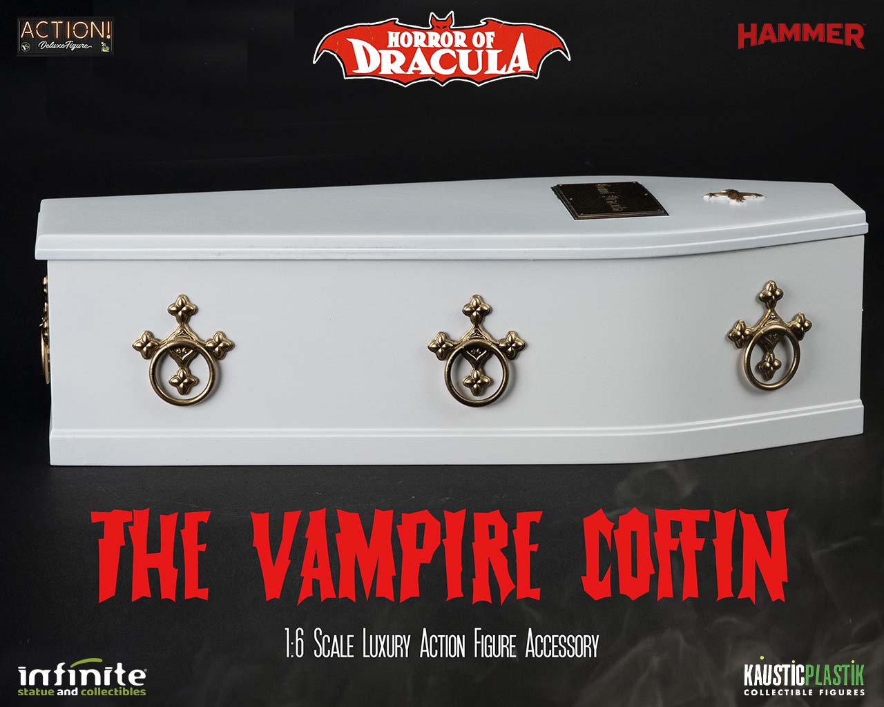 Da “Horror of Dracula”, la replica iperrealistica della Bara Bianca di Dracula è stata reinterpretata in scala 1/6 dal team artistico di Infinite e Kaustic, con incredibili dettagli ispirati alle scene del film.