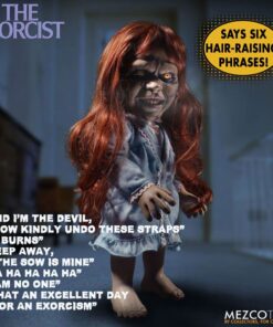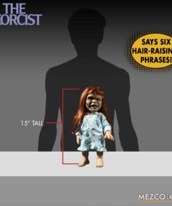 In piedi a una minacciosa altezza di 38 cm, Regan MacNeil de L’Esorcista è presentato in una vera camicia da notte di stoffa del film. La giovane posseduta dice 6 frasi iconiche e da far rizzare i capelli, tra cui “Brucia!” e “Stai lontano! La scrofa è mia!”. Il diavolo è nei dettagli e ognuno di loro è stato catturato qui; dai veri capelli selvaggi di Regan ai suoi occhi pazzi e penetranti e al sorriso maniacale. Questa figura dell’Esorcista in scala mega presenta 11 punti di articolazione per pose dinamiche da incubo.