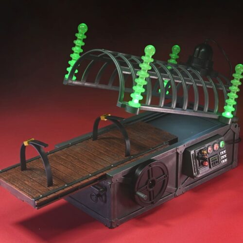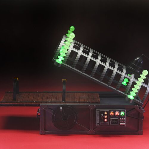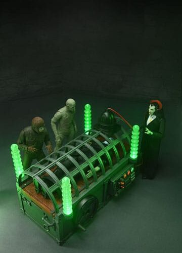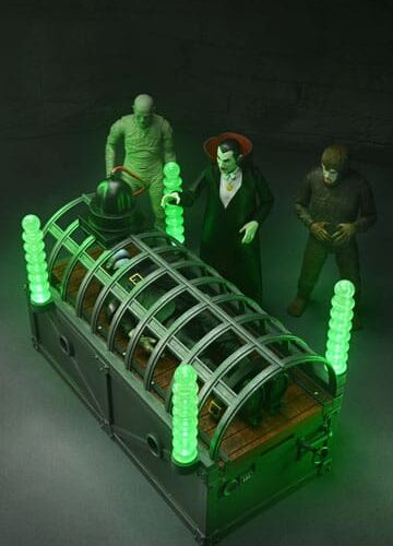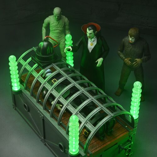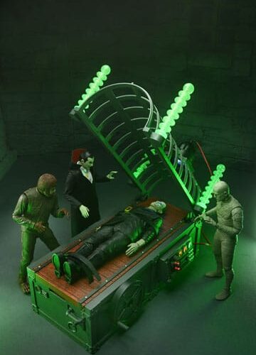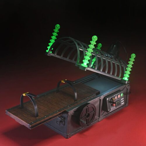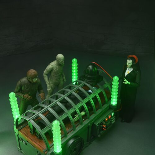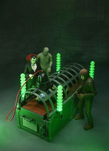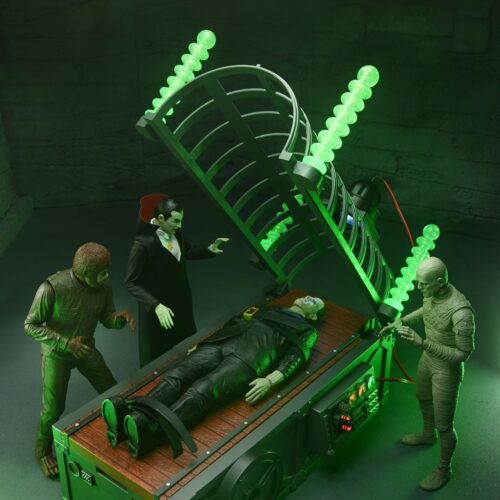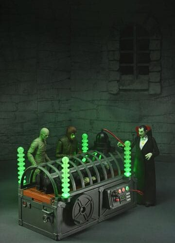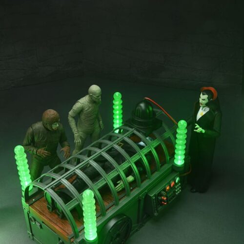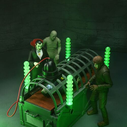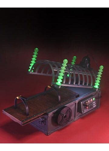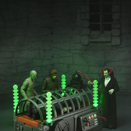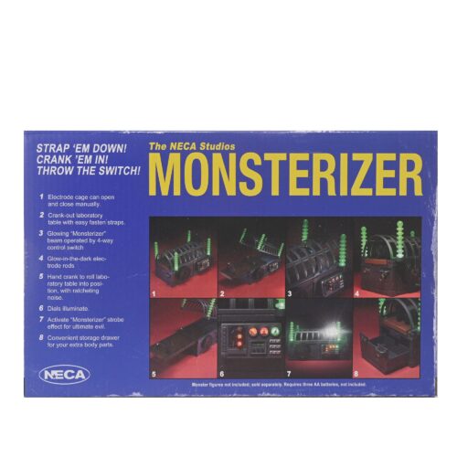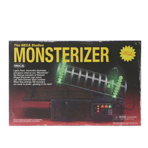 Le luci lampeggiano, gli elettrodi si illuminano e gli ingranaggi scricchiolano mentre “mostrizzi” i famosi mostri del cinema con questo tributo al Monsterizer originale degli anni ’80! Progettato per funzionare con la linea di mostri retrò di NECA che si illuminano al buio, questo fantastico diorama funzionerà anche con altre figure in scala da 7 pollici. La gabbia degli elettrodi incernierata si apre e il tavolo da laboratorio si estende quando viene avviato. Lega la tua figura con le cinghie facili da allacciare, abbassa la gabbia e premi l’interruttore per attivare il raggio “Monsterizer”! Quando emergono, i mostri sono pronti a vagare… Questa macchina per creare mostri da 10 pollici è dotata di elettrodi che si illuminano al buio , quadranti illuminati, 4 diverse funzioni LED attivate tramite leva e un comodo cassetto per riporre le parti extra del mostro! È richiesto un po’ di assemblaggio; non sono necessari strumenti. Utilizza 3 batterie AA, non incluse. Personaggi venduti separatamente. Questo prodotto è esclusivo per il NECA Store in negli Stati Uniti e sia il negozio NECA che la vendita al dettaglio per i clienti internazionali.