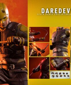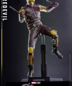 Abilmente realizzata sulla base dell’aspetto di Charlie Cox nei panni di Daredevil nella serie d’azione, la figura molto dettagliata presenta una scultura della testa di Matt Murdock di nuova concezione con un’incredibile somiglianza, una testa con cappuccio di Daredevil, un abito di Daredevil meticolosamente su misura in giallo scuro, bordeaux e grigiastro argento, il Billy Club in modalità estesa e nunchaku, i suoi caratteristici occhiali da sole e un piedistallo.