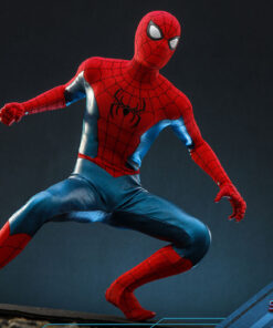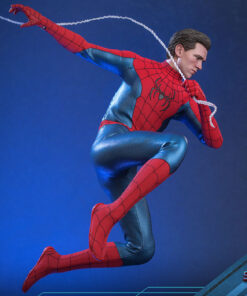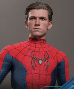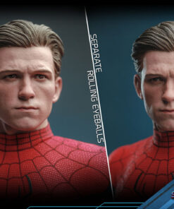 Abilmente realizzata sulla base dell’aspetto di Spider-Man/Peter Parker interpretato da Tom Holland nel film, la figura altamente accurata presenta una testa scolpita di nuova concezione di Peter Parker con bulbi oculari rotanti separati, una testa scolpita mascherata con più paia di Spider-Man intercambiabili oculari per creare numerose espressioni di Spider-Man; un abito blu metallizzato rosso finemente sartoriale con accenti neri e motivo a ragnatela; una serie di fantastici accessori tra cui una maschera di Spider-Man e parti assortite con effetti di tiro a ragnatela.