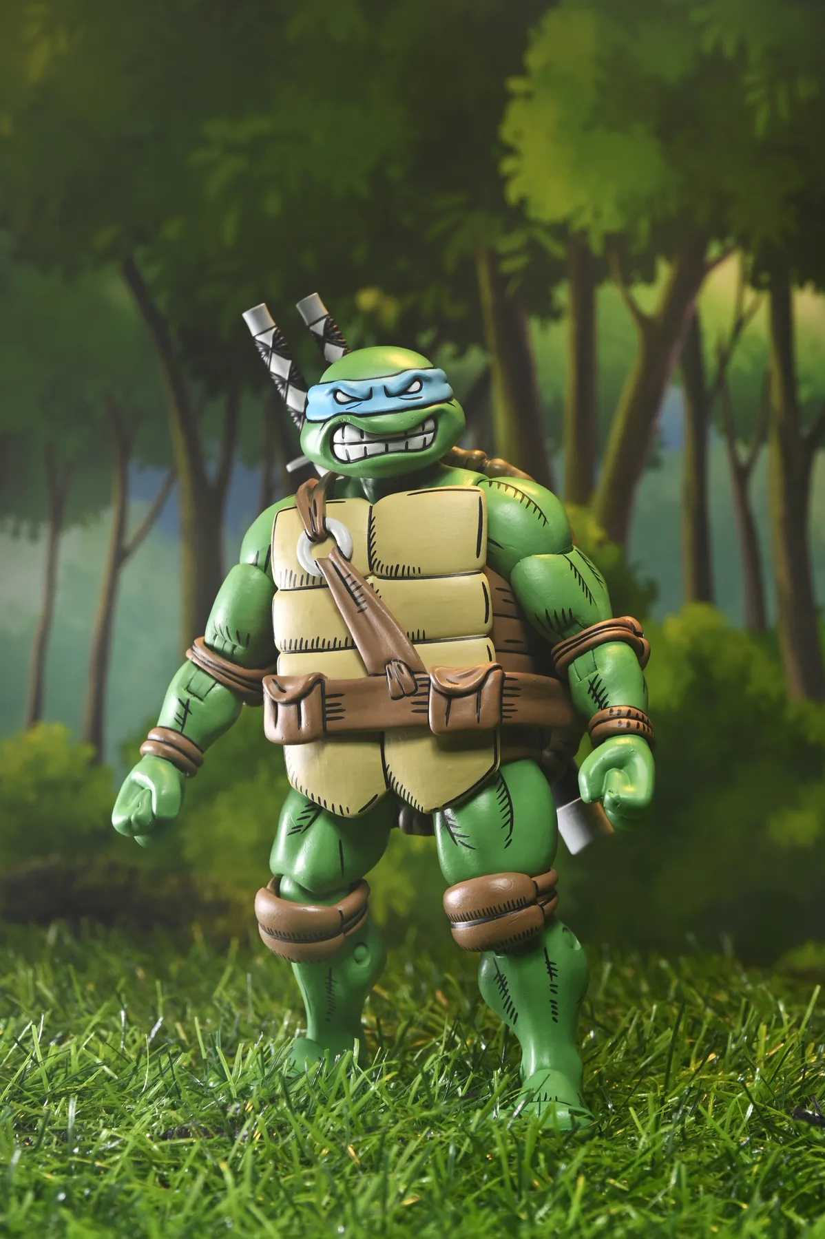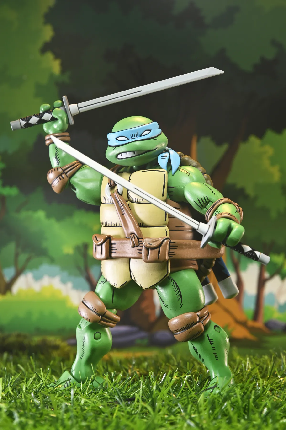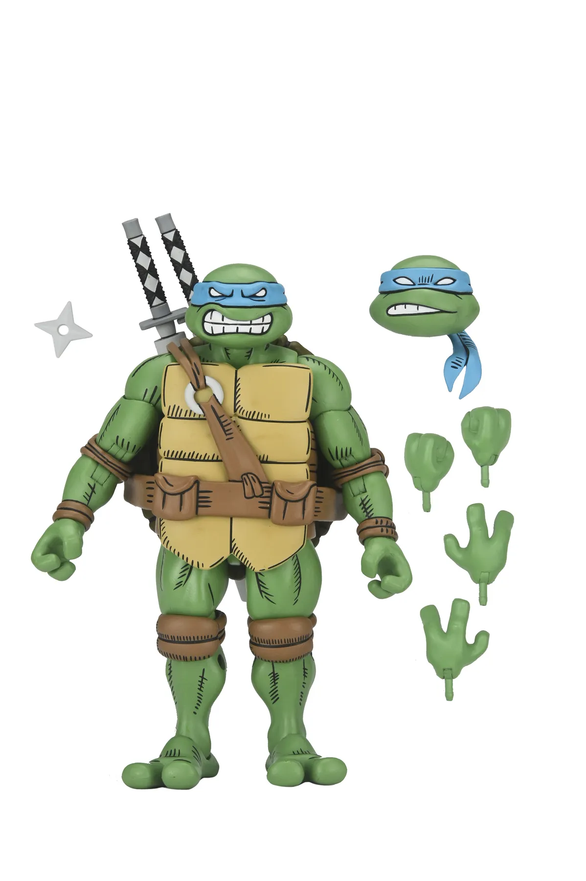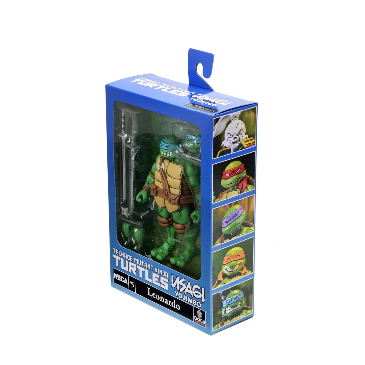 Neca celebra i quarant’anni dei fumetti delle Tartarughe Ninja e Usagi Yojimbo con una nuova serie di action figures Ultimate! La figura di Leonardo è alta circa 17 cm ed è dotata di articolazioni, mani e testa intercambiabili e delle katane.